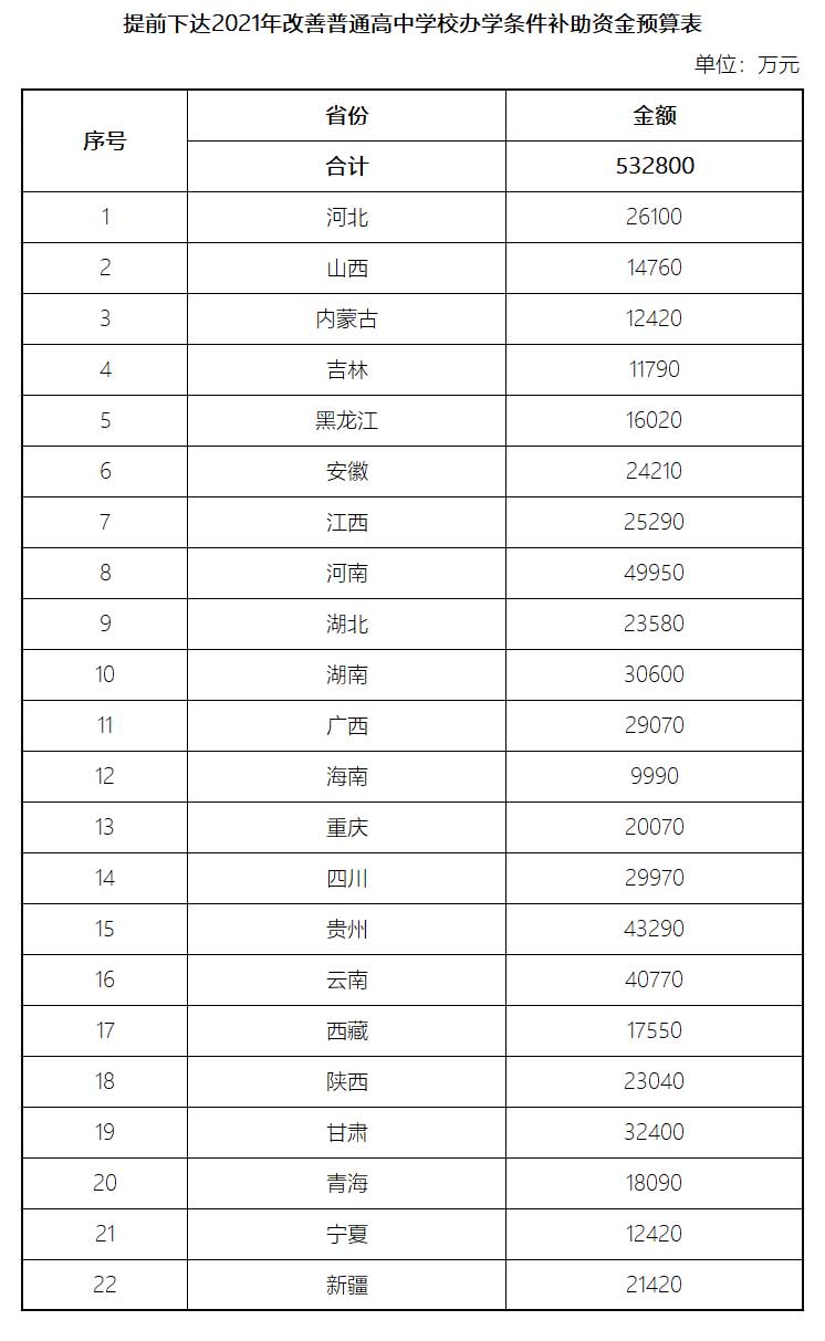 附件:提前下達2021年改善普通高中學校辦學條件補助資金預算表