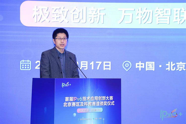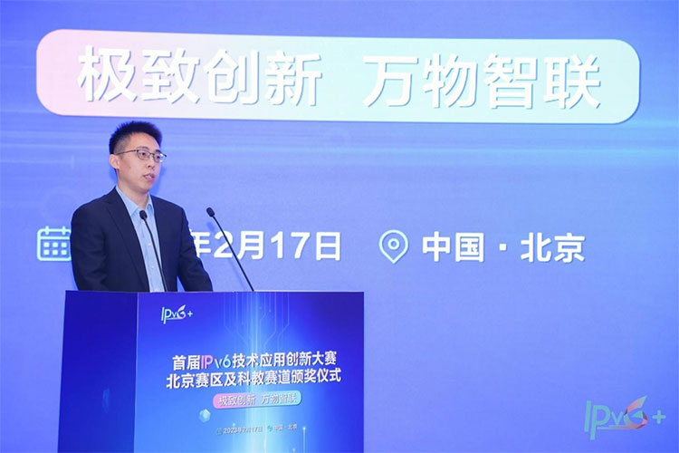 2023年2月17日下午,在工信部、中央網(wǎng)信辦、教育部指導(dǎo)下,以“極致創(chuàng)新、萬物智聯(lián)”為主題的首屆IPv6技術(shù)應(yīng)用創(chuàng)新大賽北京賽區(qū)及科教賽道頒獎(jiǎng)儀式在京隆重舉行。