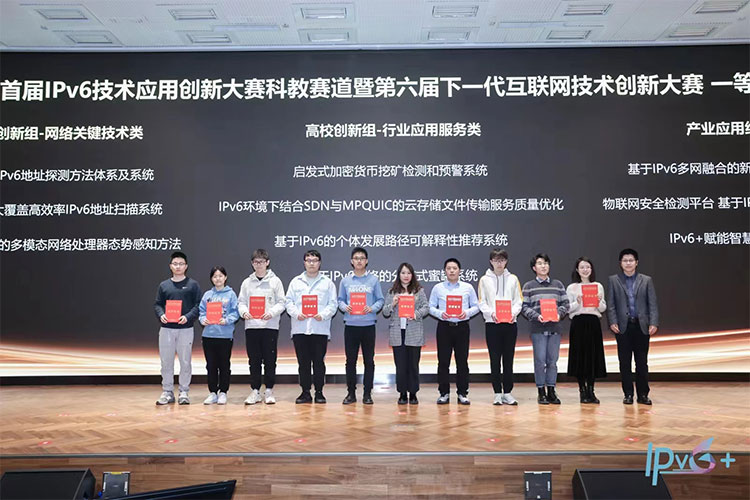 首屆IPv6技術(shù)應(yīng)用創(chuàng)新大賽科教賽道暨第六屆下一代互聯(lián)網(wǎng)技術(shù)創(chuàng)新大賽一等獎(jiǎng)獲獎(jiǎng)團(tuán)隊(duì)代表