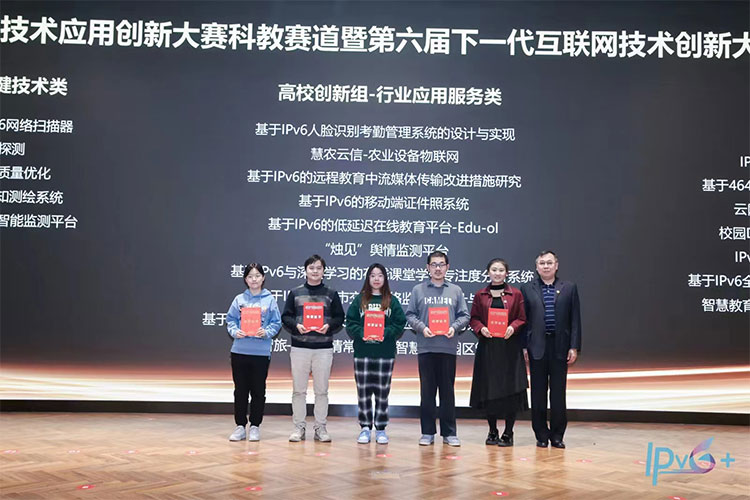 首屆IPv6技術(shù)應(yīng)用創(chuàng)新大賽科教賽道暨第六屆下一代互聯(lián)網(wǎng)技術(shù)創(chuàng)新大賽三等獎(jiǎng)獲獎(jiǎng)團(tuán)隊(duì)代表