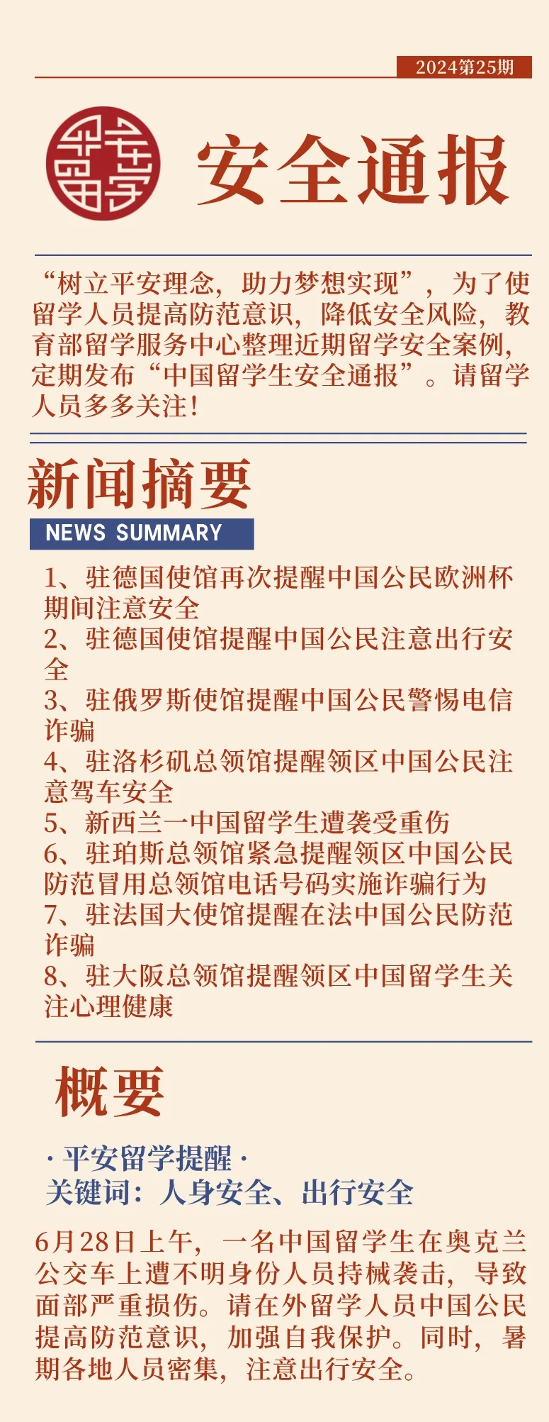 2024第25期中國(guó)留學(xué)生安全通報(bào)