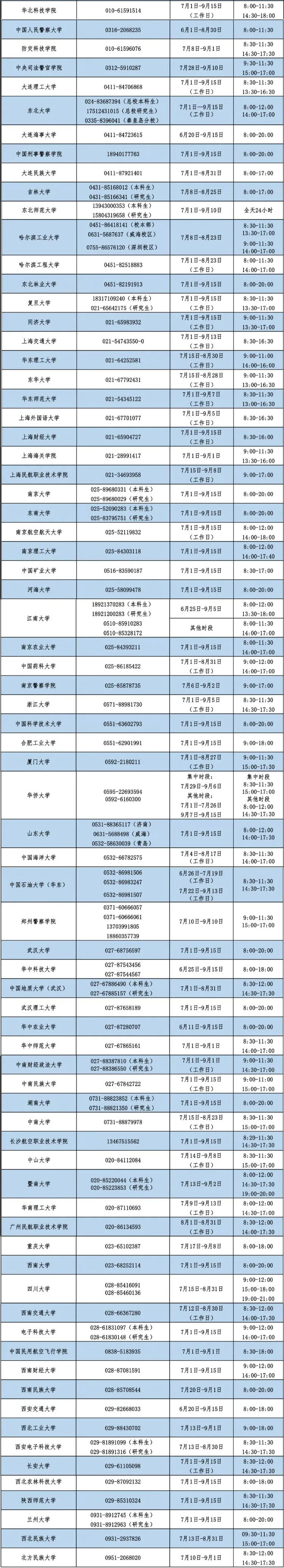 同時,各省(自治區(qū)、直轄市)和中央高校同步開通熱線電話,電話號碼與每日開通時間如下。