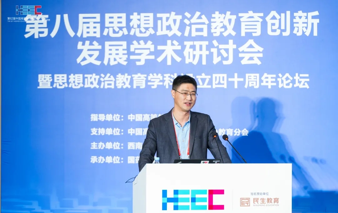 西南大學(xué)發(fā)展規(guī)劃部副部長周琪以《比較·互鑒·創(chuàng)新:新時代思想政治教育高質(zhì)量發(fā)展之道》為題,從比較、互鑒、創(chuàng)新三個維度探討了新時代思政教育發(fā)展之問。他指出,在比較層面,要通過對象與方法對比各國教育實踐,尋求精神構(gòu)建與價值共識的共通策略;在互鑒層面,要注重不同國家思政實踐的借鑒價值;在創(chuàng)新層面,要聚焦思政教育政策高頻詞。他強調(diào),做好思想政治教育自主知識體系建構(gòu),要在方法、話語、價值觀上發(fā)力;做好思想政治教育形態(tài)發(fā)展,要做到精準思政、場景思政、融合思政;做好思想政治教育話語發(fā)展,要構(gòu)建多元主體參與的話語體系、系統(tǒng)化與個性化相結(jié)合的話語和話語傳播矩陣;做好思想政治教育敘事方式發(fā)展,要奮力講好新時代故事。