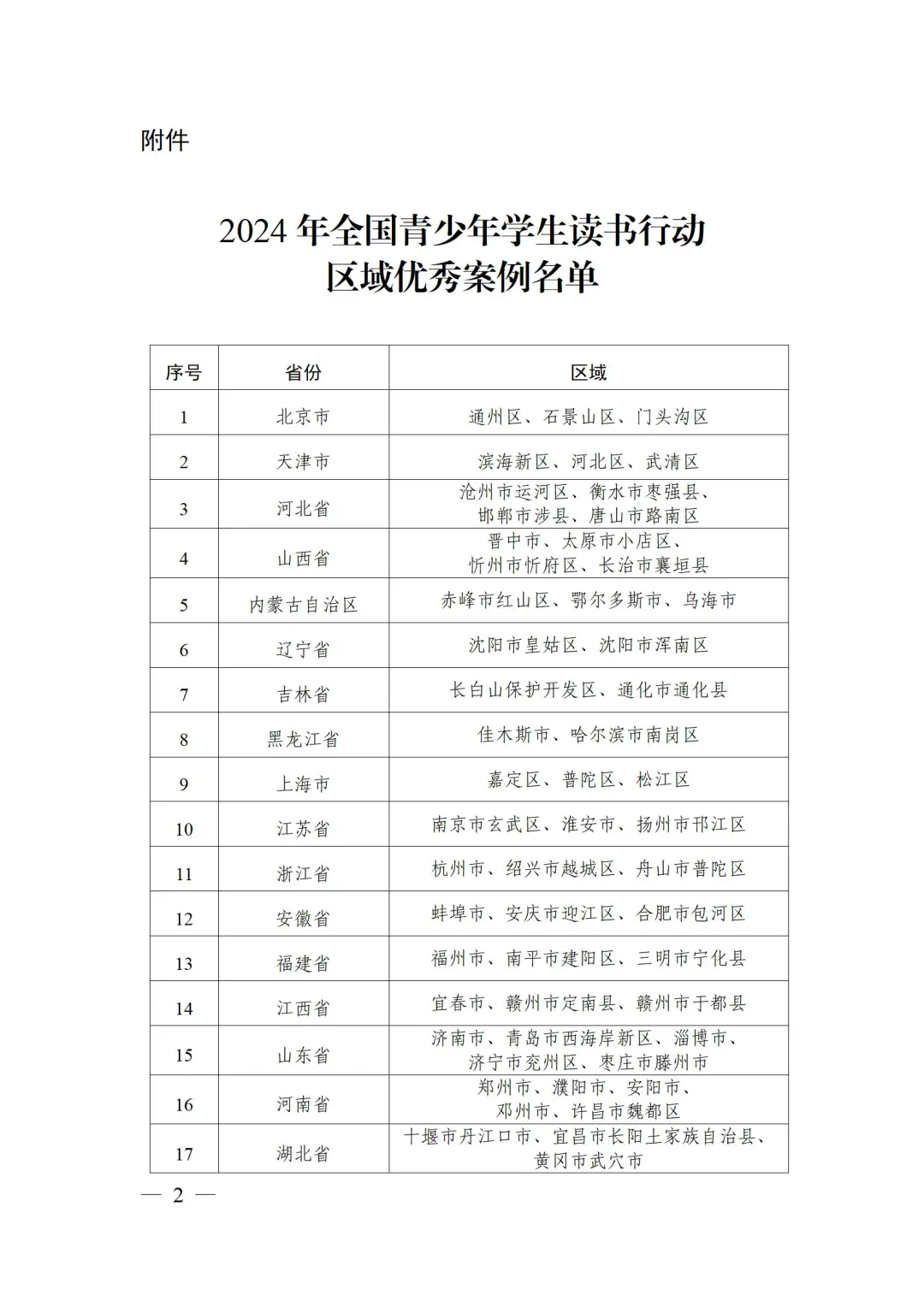 教育部公布2024年全國(guó)青少年學(xué)生讀書(shū)行動(dòng)區(qū)域優(yōu)秀案例名單
