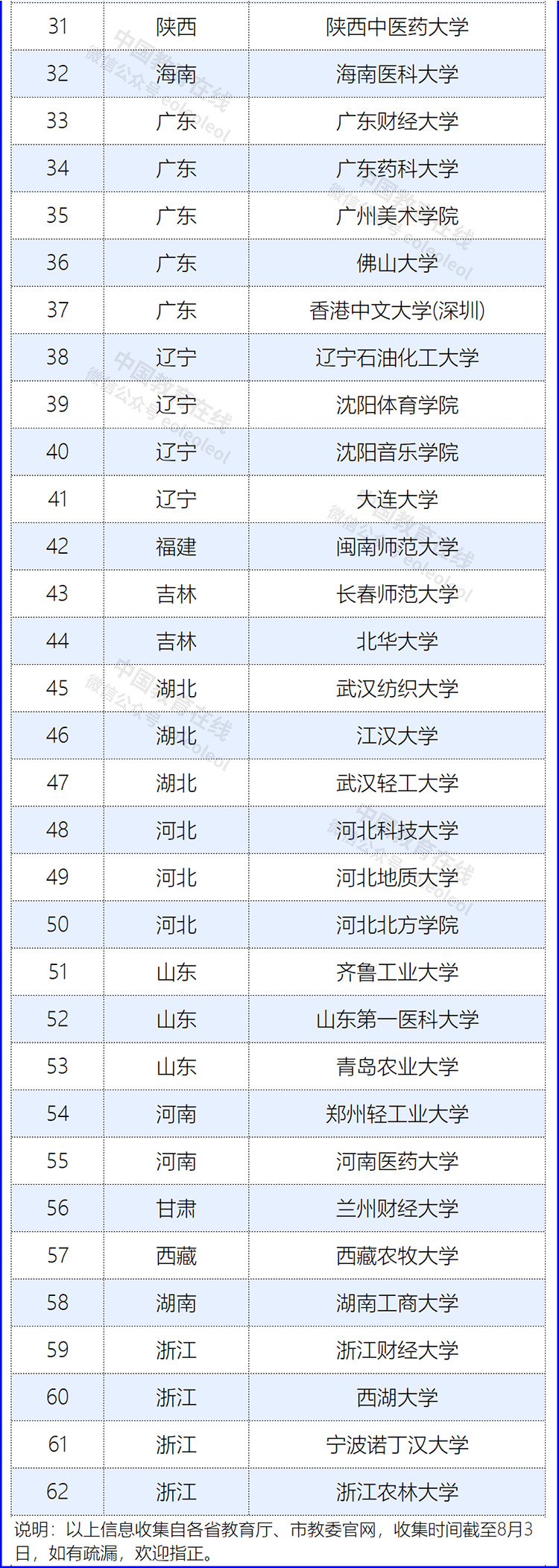 據(jù)不完全統(tǒng)計(jì),截至8月3日,已有28個省市62所高校擬推薦為新增推免資格高校。
