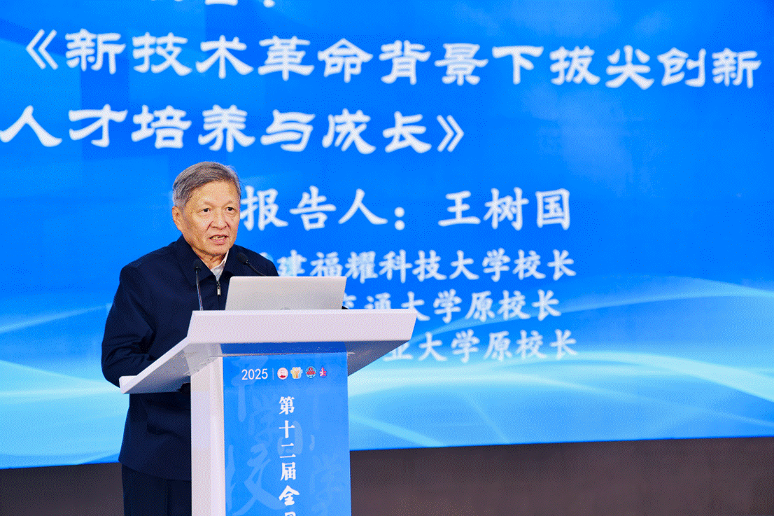福建福耀科技大學(xué)校長(zhǎng)、西安交通大學(xué)原校長(zhǎng)、哈爾濱工業(yè)大學(xué)原校長(zhǎng)王樹國(guó)作《新技術(shù)革命背景下拔尖創(chuàng)新人才培養(yǎng)與成長(zhǎng)》的主旨報(bào)告,以習(xí)近平總書記重要講話的學(xué)習(xí)心得為原點(diǎn),剖析在新技術(shù)革命背景下教育應(yīng)該走向何方,提出建設(shè)“高起點(diǎn)、小而精、研究型、國(guó)際化”新型研究型大學(xué),以教育-科技-人才“三位一體”協(xié)同為主線,指出大學(xué)必須打破學(xué)科壁壘、深化產(chǎn)教融合,用項(xiàng)目牽引、交叉創(chuàng)新點(diǎn)燃學(xué)生創(chuàng)造力,探索走出中國(guó)特色高等教育發(fā)展之路,引領(lǐng)新技術(shù)革命背景下世界高等教育發(fā)展的潮流。