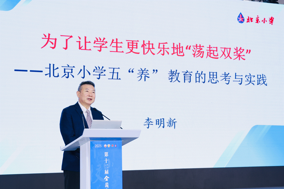 北京小學(xué)黨委副書記、校長(zhǎng),北京小學(xué)教育集團(tuán)總校長(zhǎng)李明新做題為《為了讓學(xué)生更幸福地蕩起雙槳——北京小學(xué)“五養(yǎng)”教育的思考與探索》的主旨報(bào)告,詳細(xì)介紹了學(xué)校以“五養(yǎng)”教育理念創(chuàng)新育人實(shí)踐:慢養(yǎng)尊重規(guī)律,順養(yǎng)因材施教,牧養(yǎng)激發(fā)自主,素養(yǎng)重視養(yǎng)成,調(diào)養(yǎng)促進(jìn)身心和諧,落實(shí)五育融合,構(gòu)建適合學(xué)生幸福成長(zhǎng)的生態(tài)教育,培養(yǎng)全面發(fā)展、人格健全的時(shí)代新人。