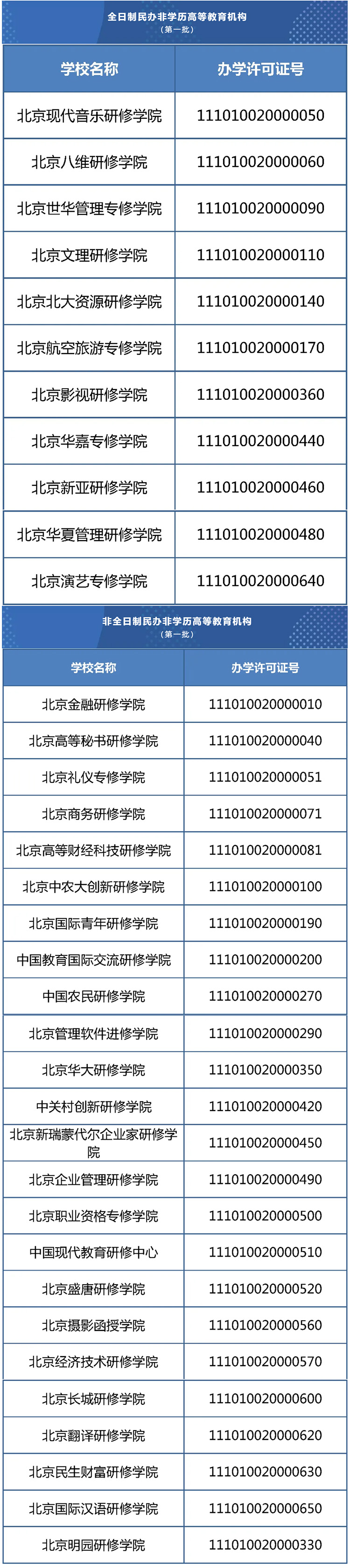 首批35所民辦非學歷高等教育機構獲批招生,包括11所全日制機構、24所非全日制機構。另有3所學校(北京應用技術專修學院、北京機械工程師進修學院、北京當代藝術研修學院)未通過年檢,將停止招生并進行整改。