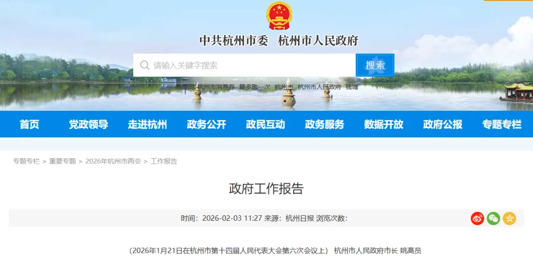 2月3日,2026年杭州市政府工作報(bào)告(全文)發(fā)布。報(bào)告在“十五五”發(fā)展主要目標(biāo)任務(wù)中提到:深入實(shí)施“雙一流196”、高?;A(chǔ)設(shè)施提質(zhì)、“名校名院名所”等重大工程,深化與浙江大學(xué)等在杭高校戰(zhàn)略合作,推進(jìn)“環(huán)浙大”創(chuàng)新創(chuàng)業(yè)生態(tài)圈建設(shè),支持西湖大學(xué)進(jìn)入國(guó)家“雙一流”建設(shè)高校序列并成為新型研究型大學(xué)標(biāo)桿、杭州師范大學(xué)爭(zhēng)創(chuàng)國(guó)家A類學(xué)科、浙大城市學(xué)院建設(shè)高水平一流應(yīng)用型大學(xué)、錢塘大學(xué)建設(shè)新型研究型大學(xué)。
