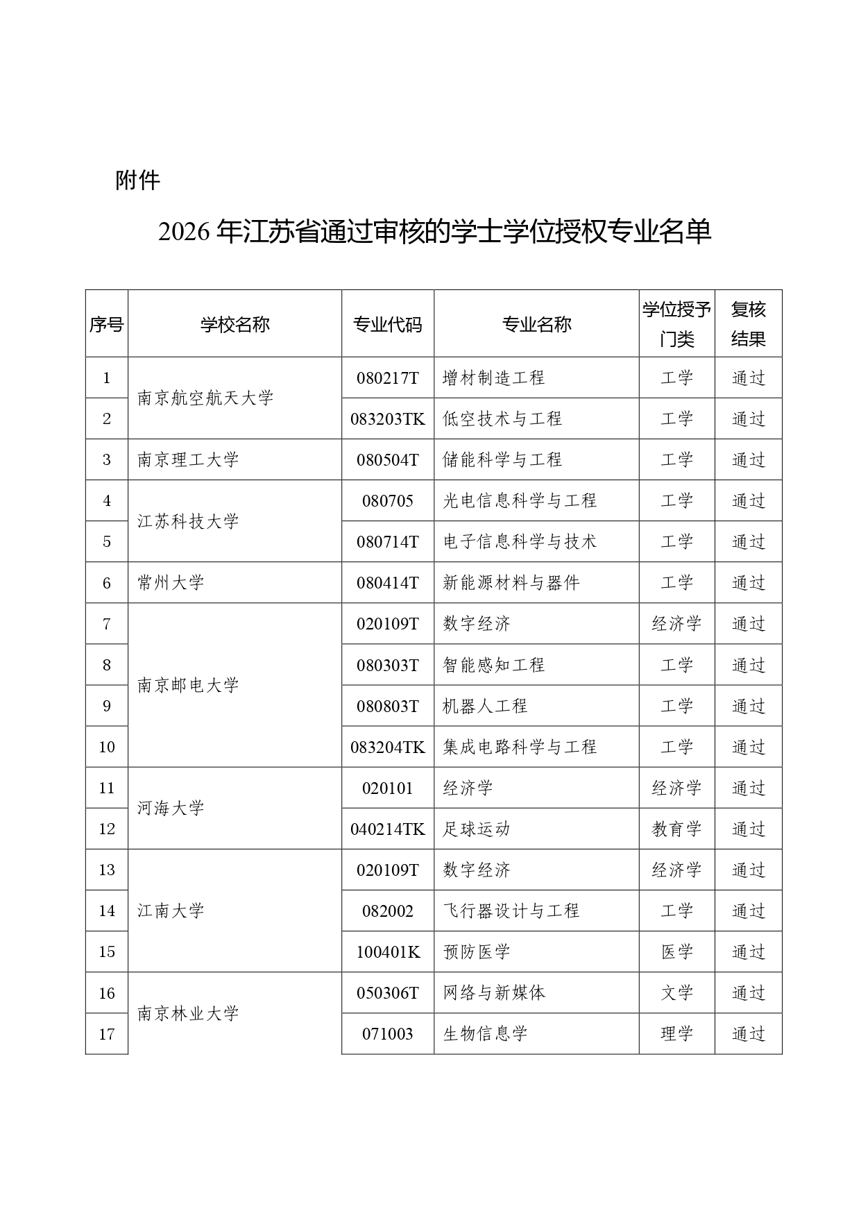 4月8日,江蘇省教育廳公示2026年江蘇省學(xué)士學(xué)位授權(quán)專業(yè)審核結(jié)果。根據(jù)《江蘇省學(xué)士學(xué)位授權(quán)與授予管理辦法》《省學(xué)位委員會(huì)辦公室關(guān)于進(jìn)一步做好學(xué)士學(xué)位授權(quán)審核工作的通知》,現(xiàn)對(duì)2026年江蘇省通過(guò)審核的學(xué)士學(xué)位授權(quán)專業(yè)進(jìn)行公示,公示期為2026年4月8日至4月14日。