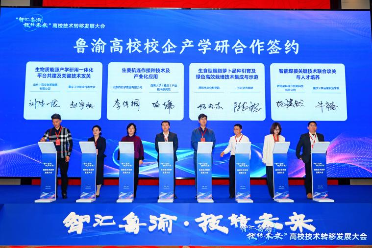 隨后,大會(huì)舉行魯渝校企合作集中簽約儀式。兩地高校、科研院所與企業(yè)現(xiàn)場(chǎng)簽署多項(xiàng)合作協(xié)議,涵蓋生物質(zhì)能源、智能焊接、綠色栽培、智慧養(yǎng)殖、倉(cāng)儲(chǔ)物流等多個(gè)領(lǐng)域,推動(dòng)一批優(yōu)質(zhì)項(xiàng)目達(dá)成合作。