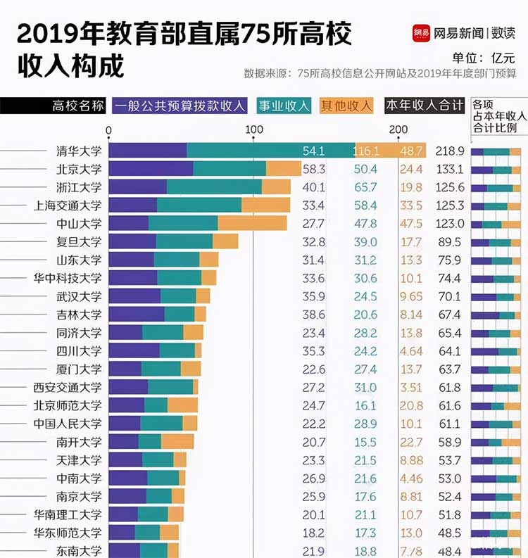 其他著名高校也類似,國家財政直接撥款占比并不高,主要還是學校自籌的經(jīng)費。