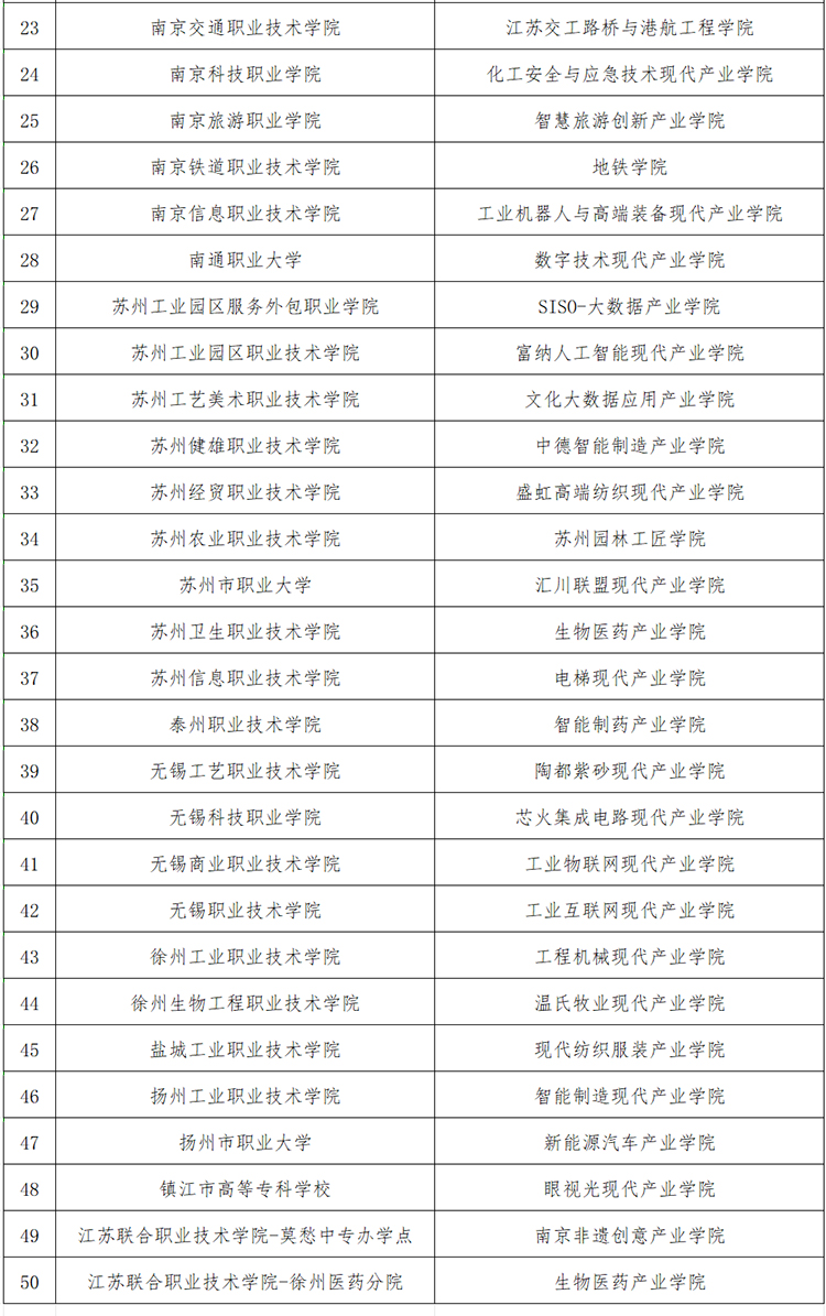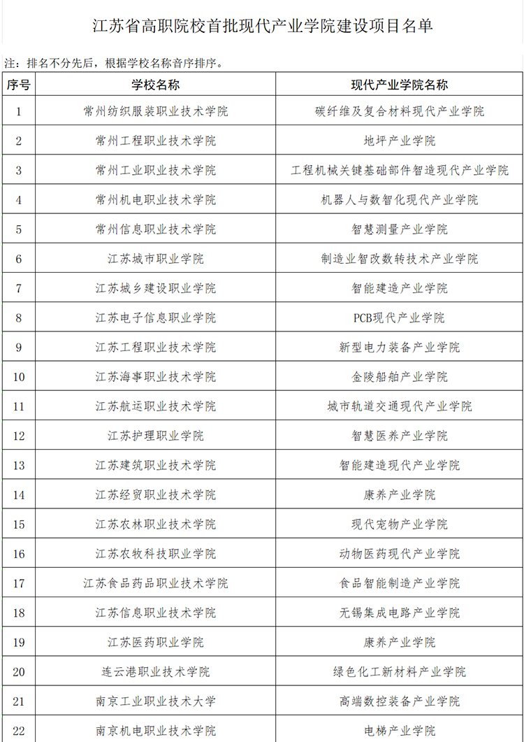 江蘇省高職院校首批現(xiàn)代產(chǎn)業(yè)學(xué)院建設(shè)項目名單公布