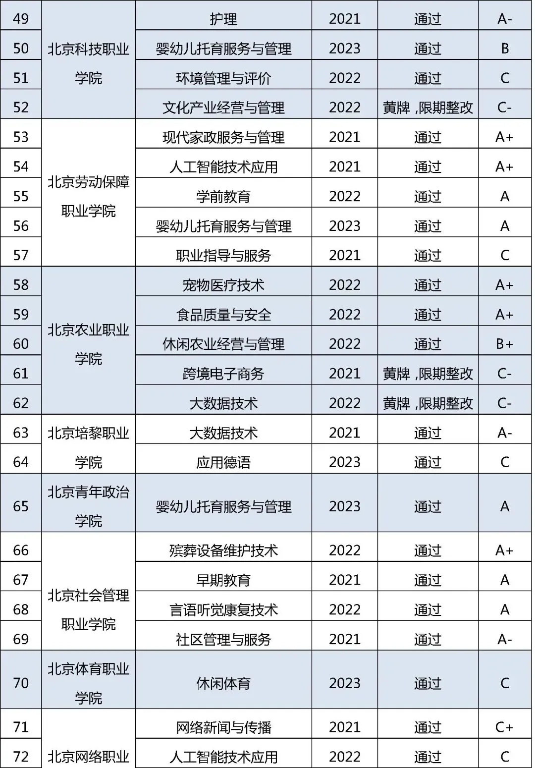 北京市教委提醒各學(xué)校通過“北京市職業(yè)院校專業(yè)設(shè)置管理系統(tǒng)”查看“一校一專一策”監(jiān)測(cè)評(píng)價(jià)意見,進(jìn)一步提升專業(yè)設(shè)置的科學(xué)性和適應(yīng)性,并明確表示,評(píng)價(jià)結(jié)論為“黃牌、限期整改”的專業(yè)應(yīng)在規(guī)定期限內(nèi)完成整改并提交整改報(bào)告,整改后仍未達(dá)到要求的專業(yè)給予“紅牌”退出,撤銷專業(yè)辦學(xué)資格。
