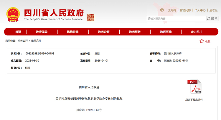 省政府批復(fù)!四川華新現(xiàn)代職業(yè)學(xué)院轉(zhuǎn)為公辦