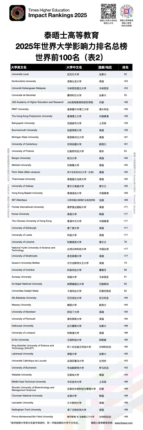 日前,2025年泰晤士高等教育世界大學影響力排名在土耳其舉行的全球可持續(xù)發(fā)展大會上隆重揭曉。