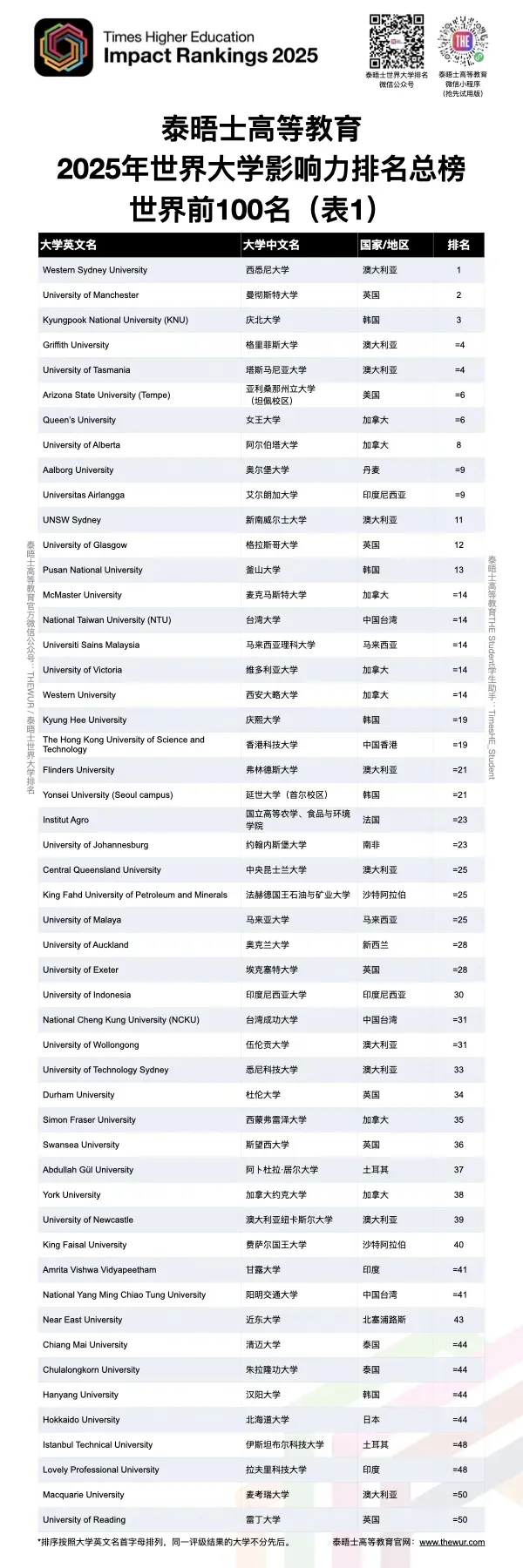 澳大利亞西悉尼大學連續(xù)第四年位居總排名榜首,英國曼徹斯特大學蟬聯(lián)世界第二名。
