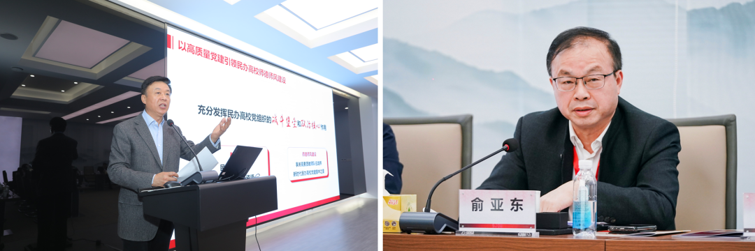 教育部思政課總教指委主任、民辦高校思政課分教指委主任楊曉慧,中國民辦教育協(xié)會(huì)黨建專委會(huì)理事長俞亞東講話