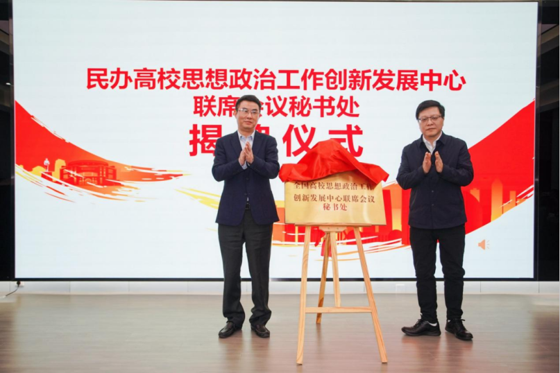 教育部思政司副司長余先亭和上海市教衛(wèi)工作黨委副書記、上海市教委副主任、上海市民辦高校黨工委書記閔輝為民辦高校思政工作創(chuàng)新發(fā)展中心聯(lián)席會(huì)議秘書處揭牌