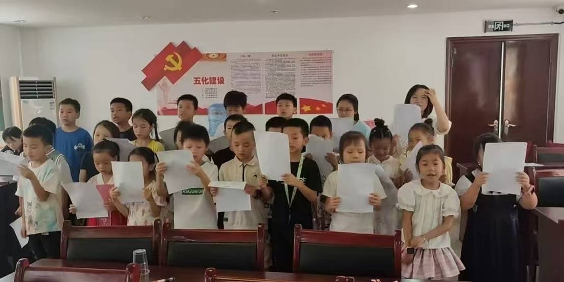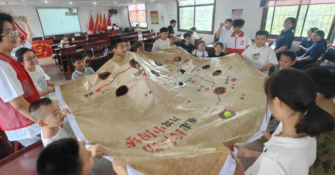 紅色教育潤(rùn)童心,基因傳承有新意。團(tuán)隊(duì)以“用情傳史”為理念,讓紅色精神在互動(dòng)中浸潤(rùn)孩子們的心靈。在“長(zhǎng)征足跡”主題活動(dòng)中,成員們創(chuàng)新形式,通過趣味互動(dòng)讓歷史“活”起來:孩子們合力扯著皮布滾動(dòng)小球,球到一處,便聆聽一段長(zhǎng)征故事;課本里的紅色篇章被搬上“舞臺(tái)”,孩子們化身故事主角參與角色扮演。生動(dòng)的體驗(yàn)讓孩子們觸摸到歷史的溫度,紅色基因不再是遙遠(yuǎn)的符號(hào),而是融入血脈的傳承。每當(dāng)《五星紅旗迎風(fēng)飄揚(yáng)》的歌聲在課堂響起,孩子們眼中的自豪與激昂便感染著在場(chǎng)每一個(gè)人,這份純粹的愛國(guó)情懷,成為暑期課堂里最動(dòng)人的旋律。