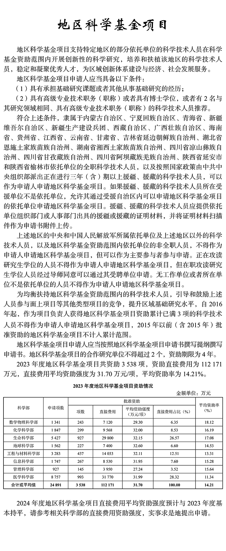 3. 地區(qū)科學(xué)基金項目:自 2016 年起,作為項目負責(zé)人獲得資助累計不超過 3 次,2015 年以前(含 2015 年)批準資助的地區(qū)科學(xué)基金項目不計入累計范圍。