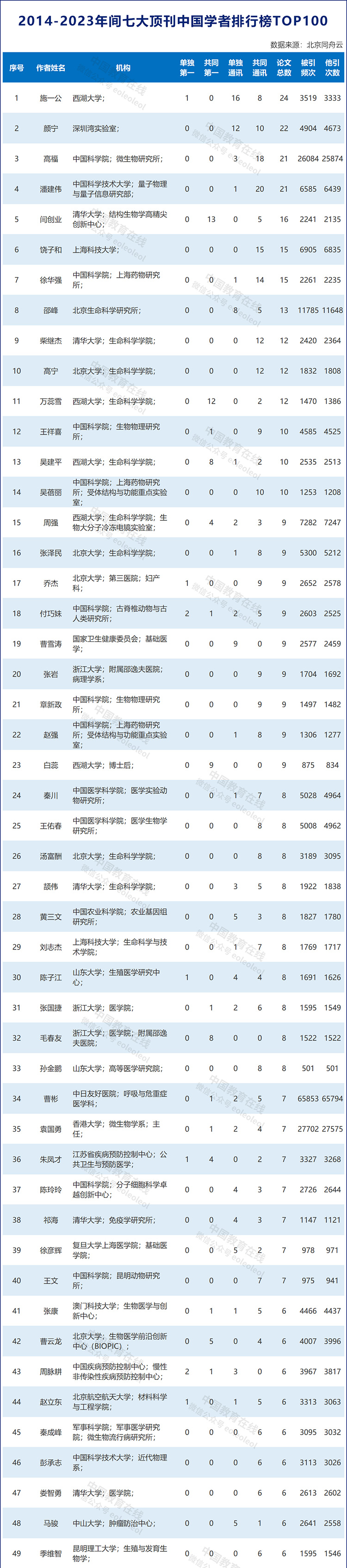 中國學(xué)者排行榜TOP100