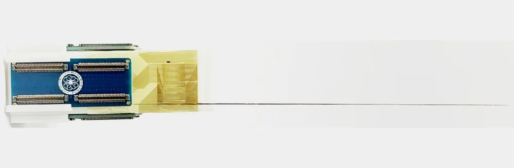 制備高通道神經(jīng)探針的一個(gè)主要瓶頸是神經(jīng)探針和后端電子器件之間的連接。良好的電學(xué)連接可實(shí)現(xiàn)神經(jīng)信號的精準(zhǔn)采集與傳輸。為此,研究團(tuán)隊(duì)還研發(fā)了高密度柔性冷焊技術(shù),實(shí)現(xiàn)了“神經(jīng)卷軸”探針與后端電子器件的集成化、高密度連接。