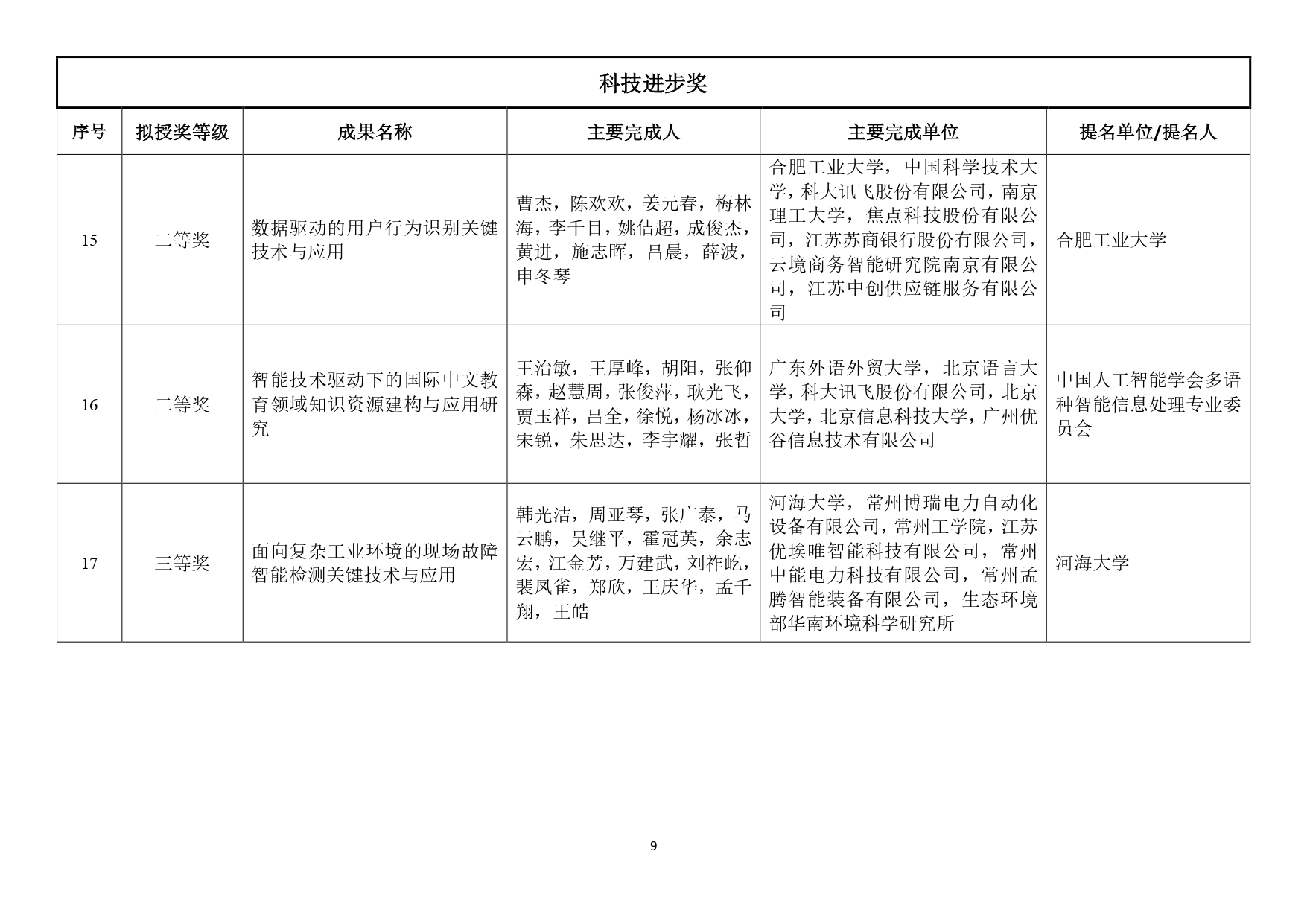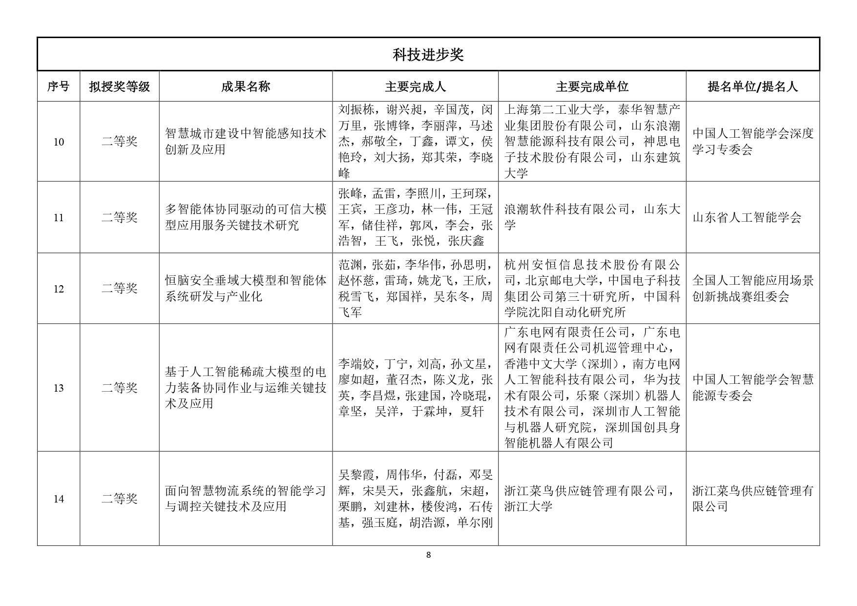 1月15日,中國人工智能學(xué)會公示2024年度吳文俊人工智能科學(xué)技術(shù)獎擬授獎項目名單。名單顯示,徐宗本院士獲科技成就獎提名,張大鵬、王國胤、章毅獲科技貢獻獎提名。此外,自然科學(xué)獎9項,技術(shù)發(fā)明獎8項,科技進步獎17項,青年科技獎15人。據(jù)統(tǒng)計,共有21所高校作為第一完成單位入選。